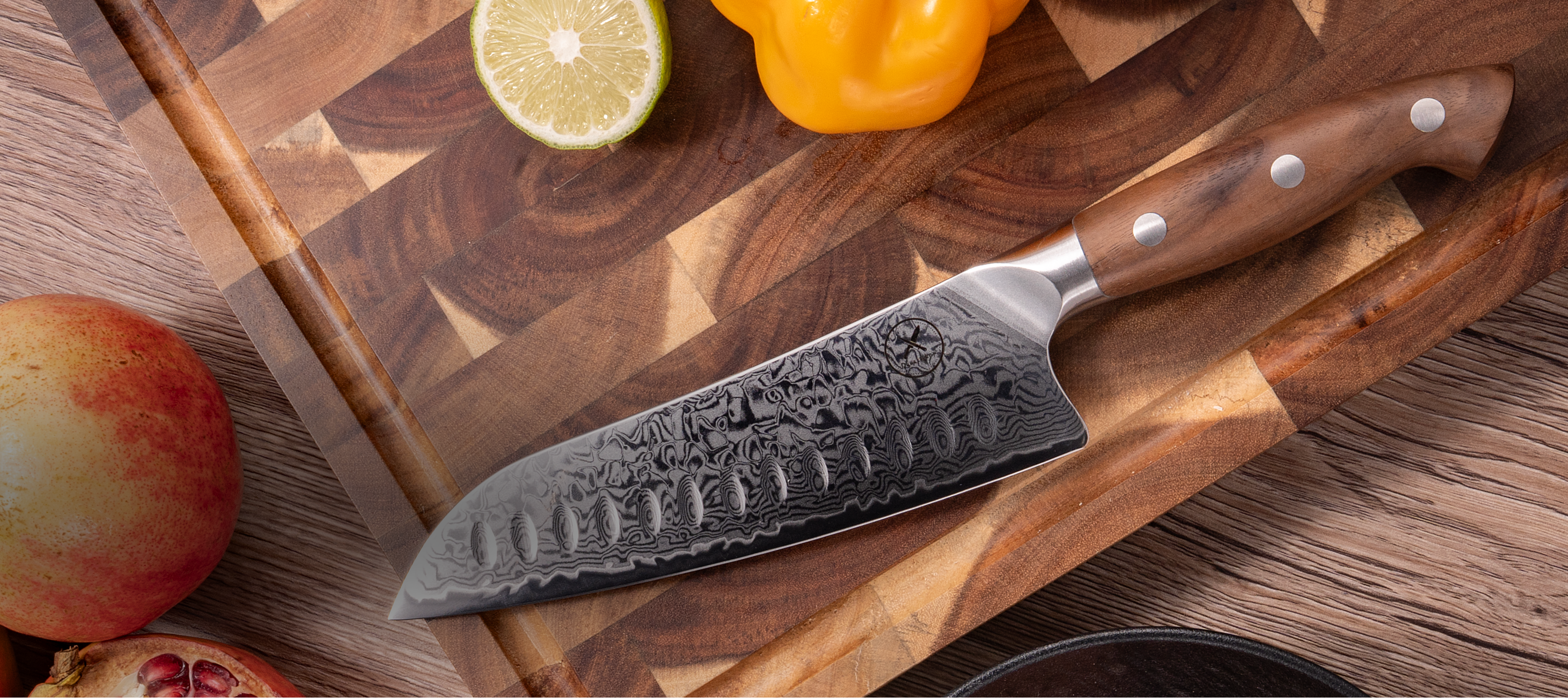 Entdecke unsere Messer mit echtem Damaststahl – scharf, langlebig und präzise. Wähle aus verschiedenen Serien dein perfektes Messer für jeden Einsatz in der Küche. Ob Santoku, Chefmesser oder Universalmesser: Jedes Stück vereint Funktion und Design auf höchstem Niveau.