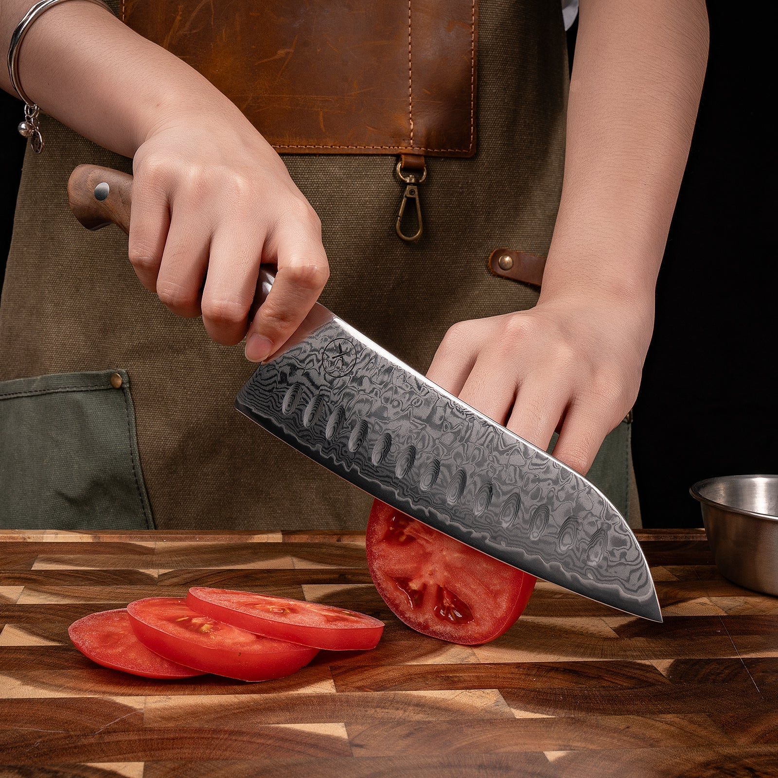Premium Damast Santoku Walnuss